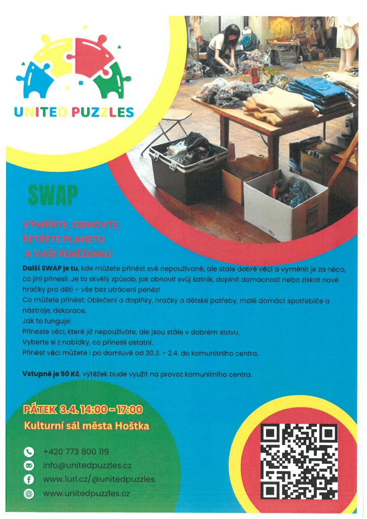 Zveme vás na SWAP spolku United Puzzles, který se koná v pátek 3. dubna 2026 v Kulturním sále města Hoštka.